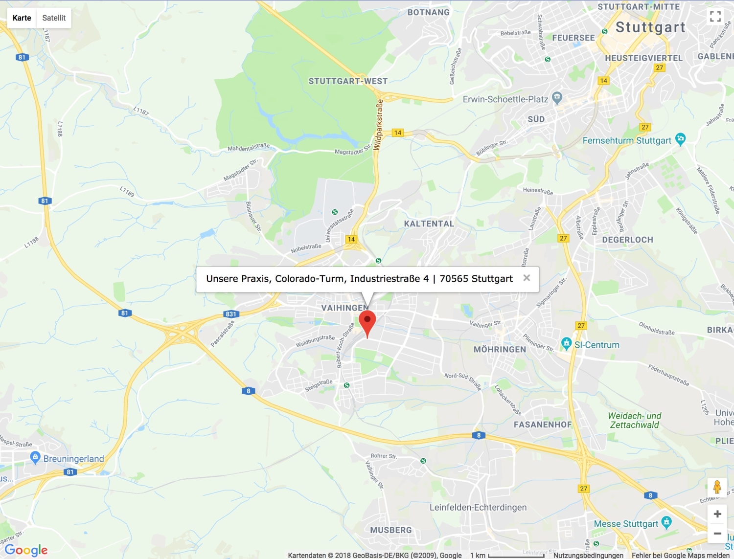 Mit dem Auto erreichen Sie uns über die A81, Ausfahrt Vaihingen sowie über die A8, Ausfahrt Möhringen, jeweils nach nur 500 m.